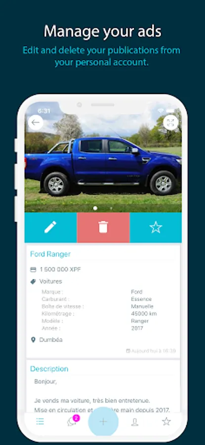 Save precious time by capturing your photos and writing your ad right there on your phone. Respond to interested buyers and send them other pictures with instant messaging. Manage your own ads efficiently from your personal space.