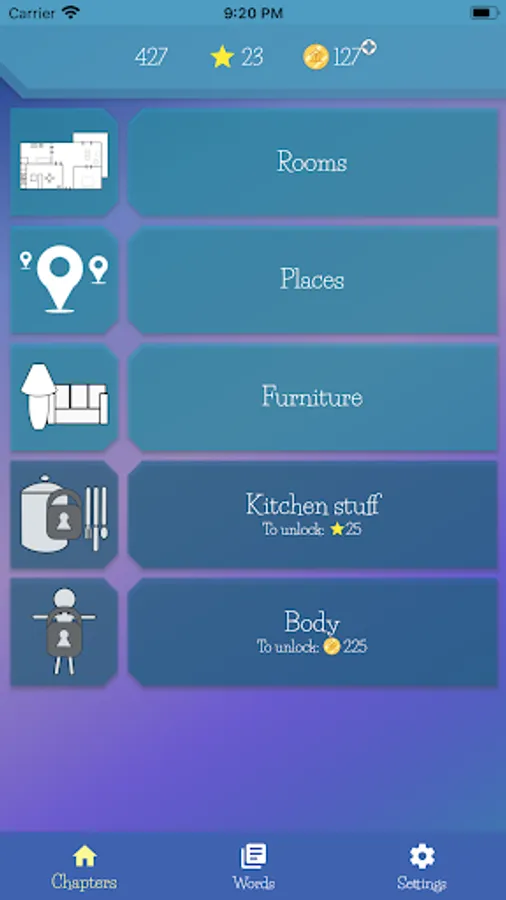Each lesson (category) has 10-14 unique words with the great-looking, painted graphic.