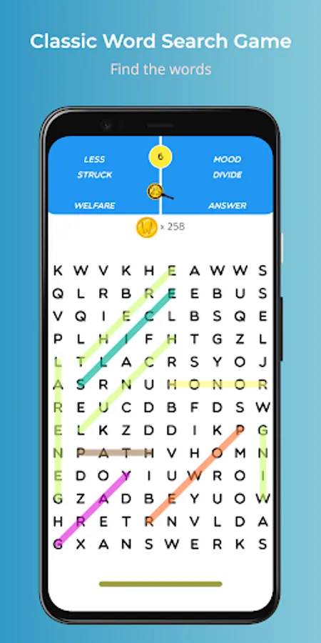 You can use in-game currency to use hints in case of a problem. By using a hint you will highlight the first letter of a random word on the board in the current word search puzzle level. Coins are also required to play a daily challenge pro. Find every hidden word, then check the online leaderboard! Of course, itโs unnecessary and you can also play offline - without wifi.