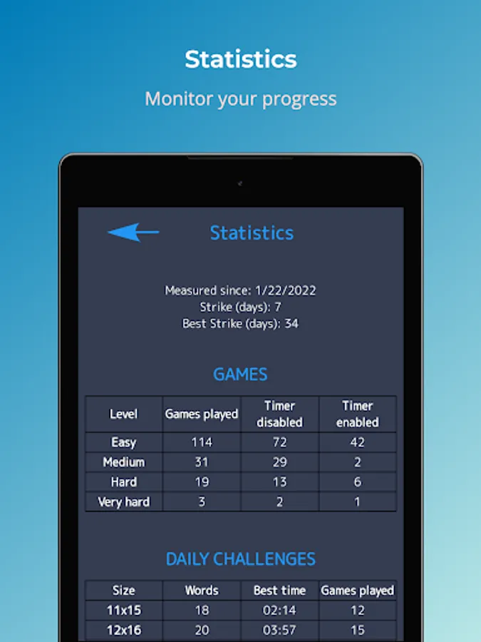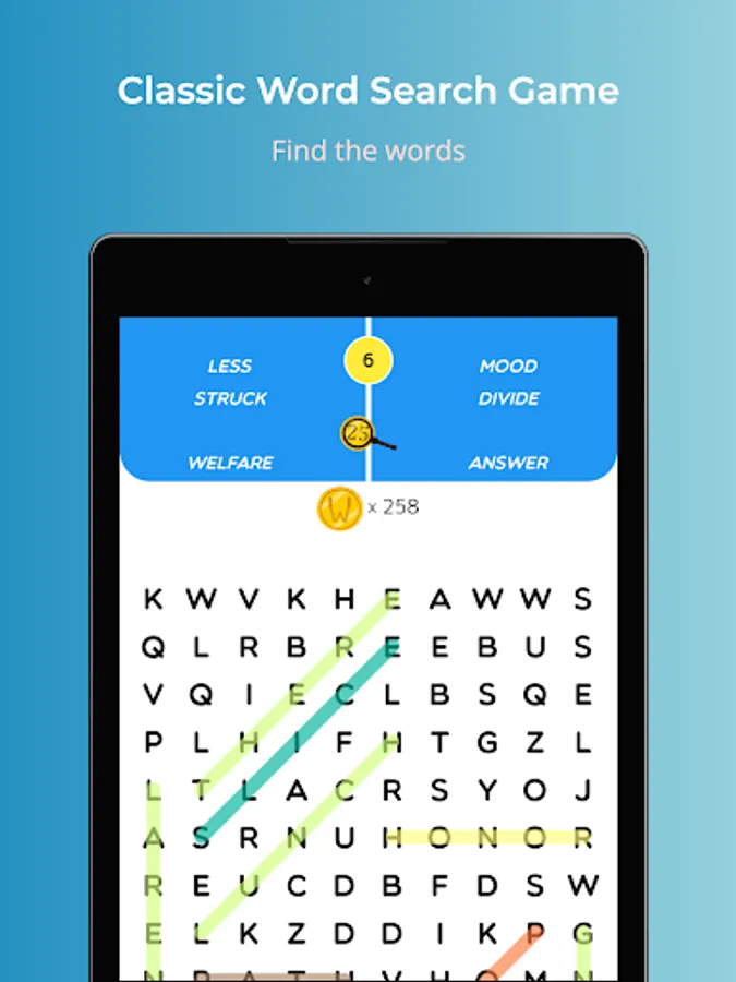 is a simple, but challenging, free, word game. Playing this popular type of 'seek and find' game is a very engaging way to spend your free time. In the meantime, you will also make good use of your brain ๐ง and perceptivity skills. You can also compare your performance in a hard, daily challenge with an online leaderboard!Word search puzzle games fan?