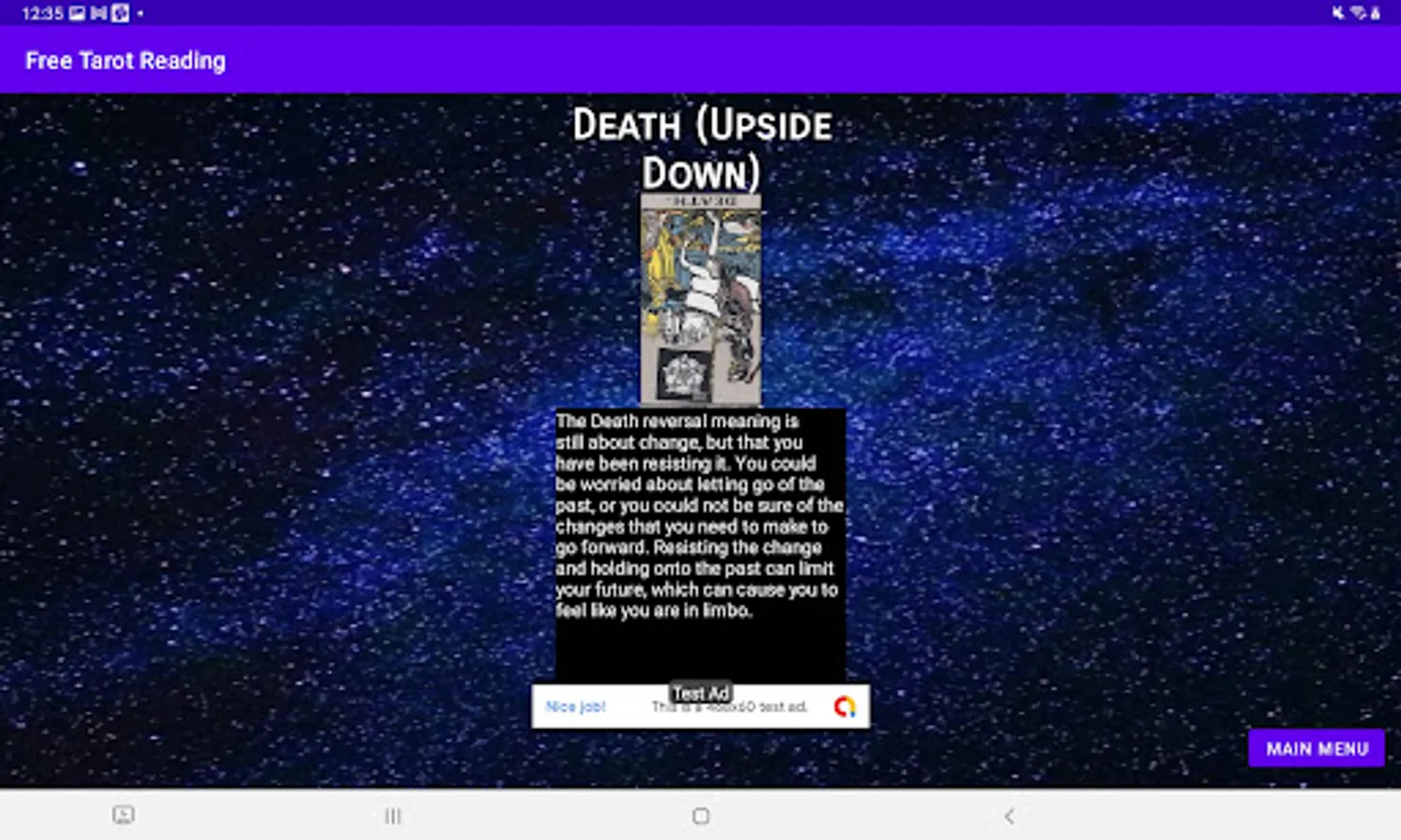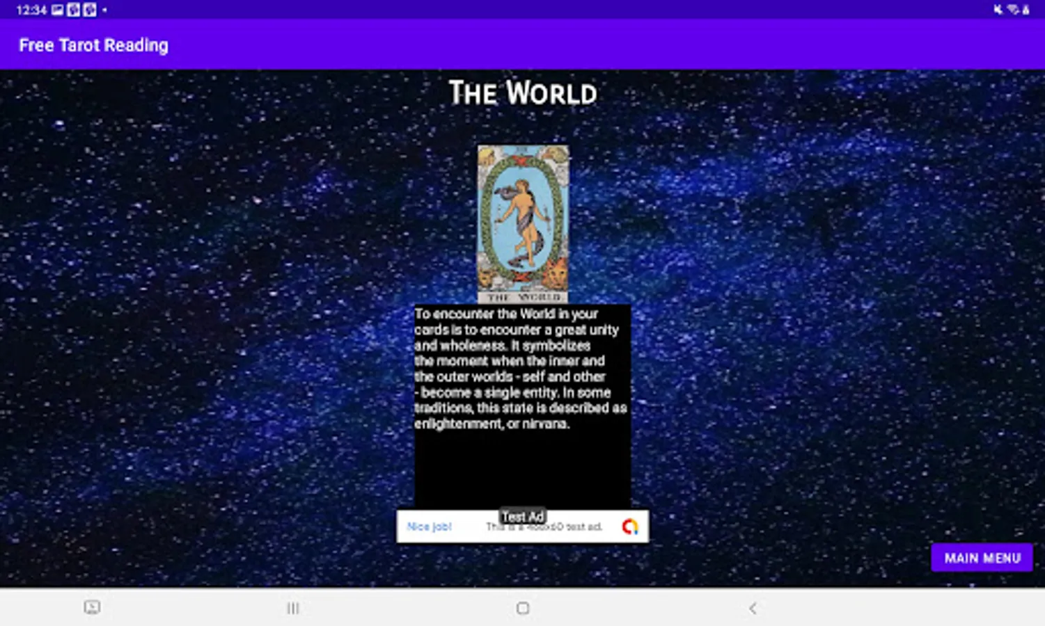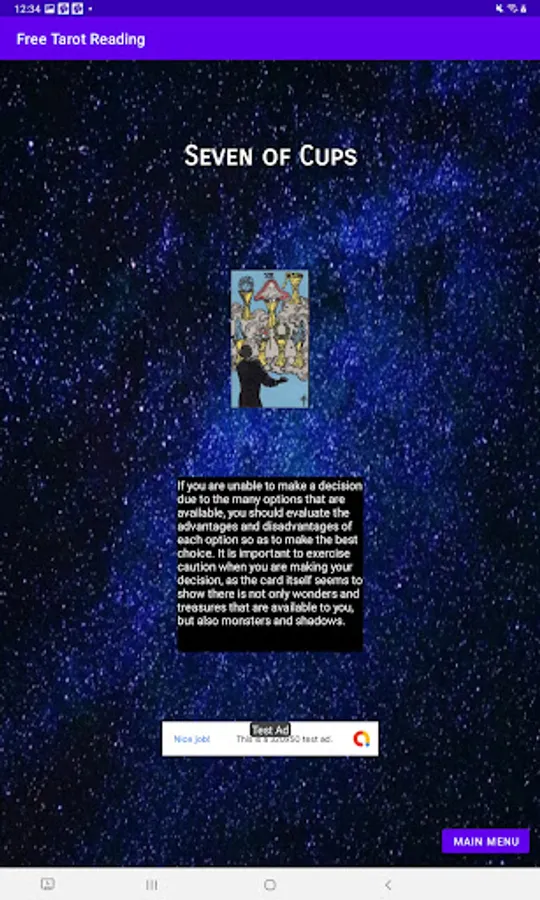 A simple app that provides a Tarot Card reading one card at a time. No subscriptions, no cost, no fuss, just draw a card! Beautiful illustrations from the Rider-Waite deck. Features upright and reversed cards with a brief meaning displayed. Made with love, I hope you enjoy it!