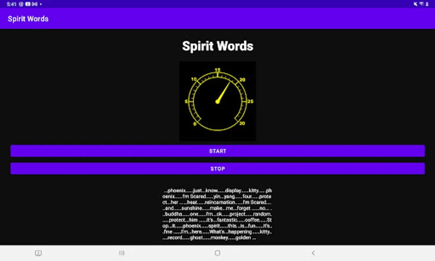 Are ghosts and spirits able to communicate with us using technology? There are many stories or people receiving messages from the other side through phone and computer technology. This app uses a database of random words that we believe spirits are able to use to communicate with us. Once you open the app state your intention or ask a question of the spirit realm then press the start button. Wait for a few seconds and our app will detect when a spirit has selected a word and it will appear on the screen. Press stop to end the connection with the spirits.