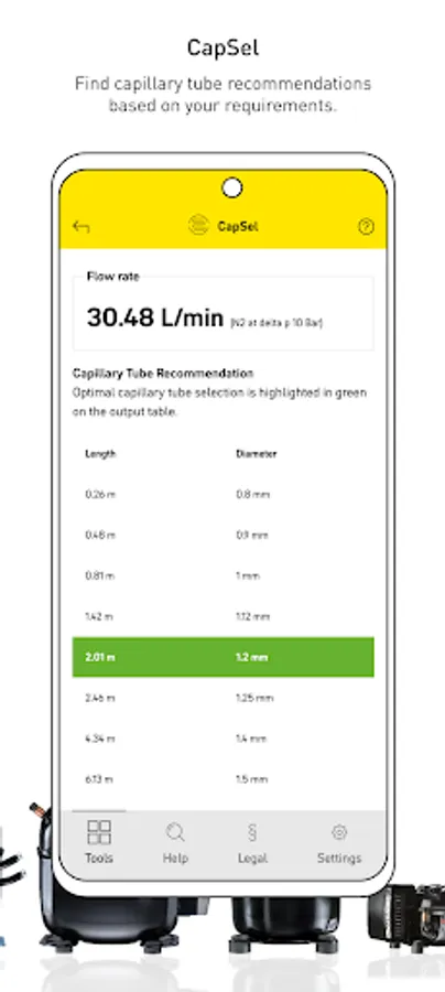 The Toolkit also provides the Secop capillary tube selection software called “CapSel”. The CapSel allows the user to calculate a capillary tube throttling device for a refrigeration system using empirical formulas.