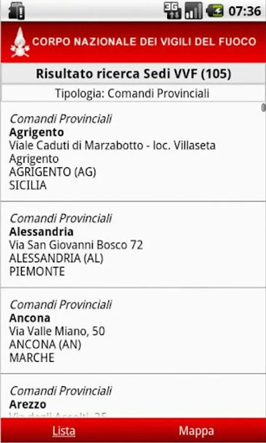 And 'possible to filter the locations by region, province, type (eg, Provincial Headquarters or Detachments) and is available with a free text search.