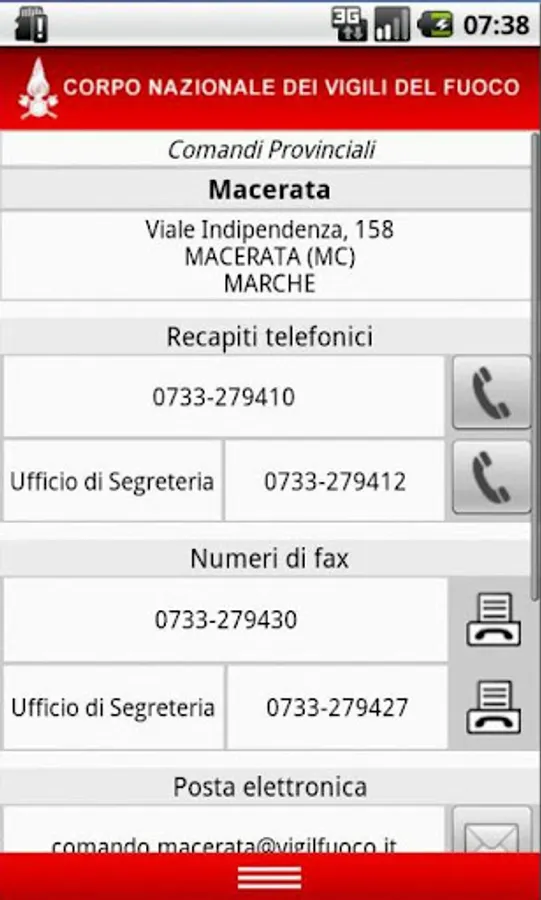 Contact VVF provides address, telephone numbers, fax numbers, email addresses and locations of the PEC of the Fire Department over the national territory.
