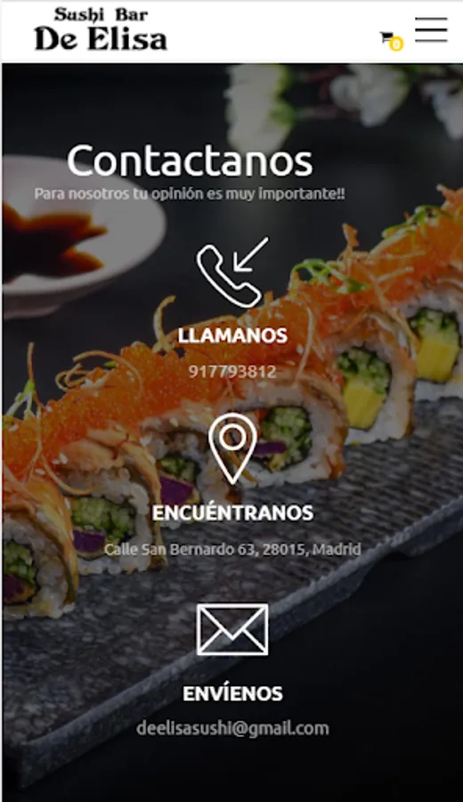 De Elisa Sushi is an oriental food restaurant in the Center of Madrid in the Malasaña neighborhood. You will find a wide variety of sushi capable of bringing the best flavors of Japan to your palate.