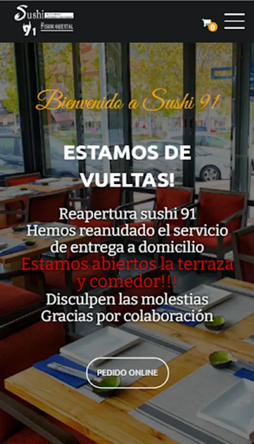 We are waiting for you soon at Sushi 91 Oriental Fusion, or if you prefer, we also provide home service or Catering (sushi boats).