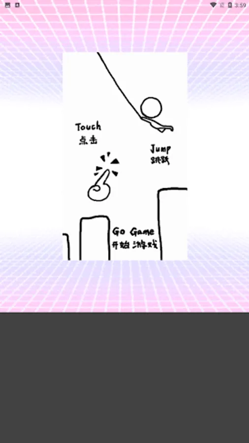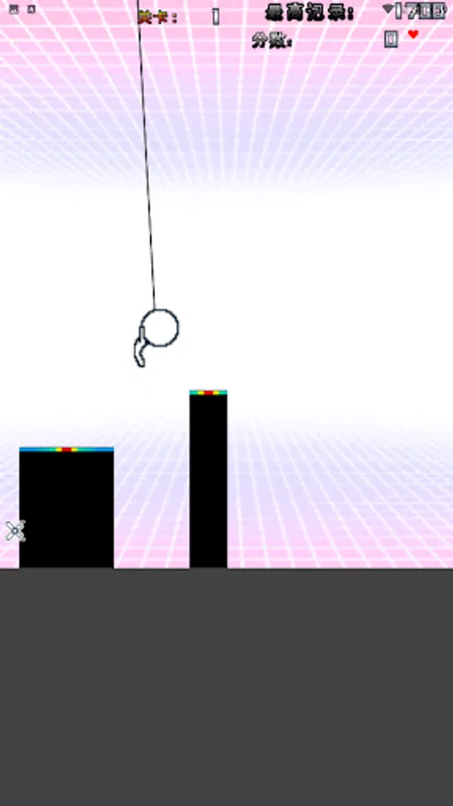 This is a casual game, the player jumps to another obstacle by controlling the character on the rope.
