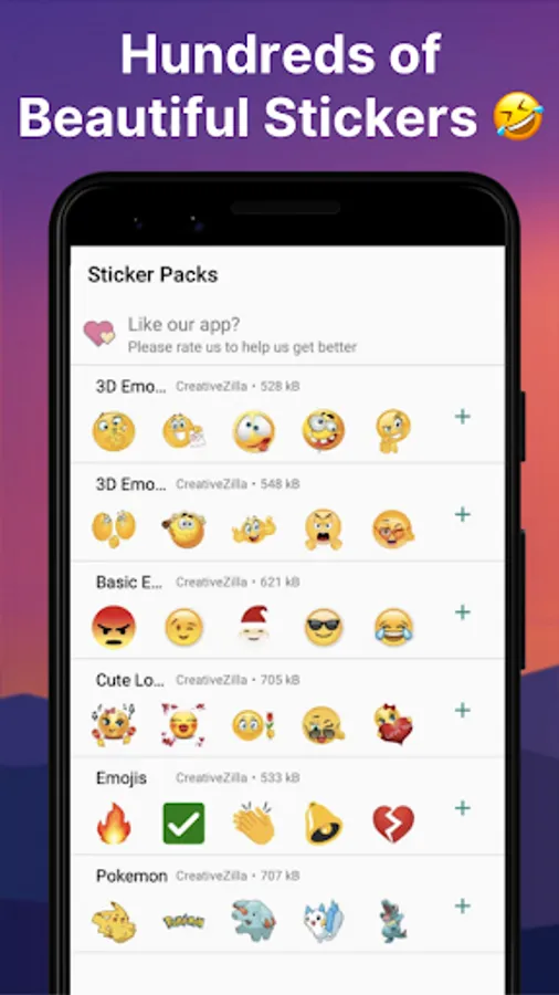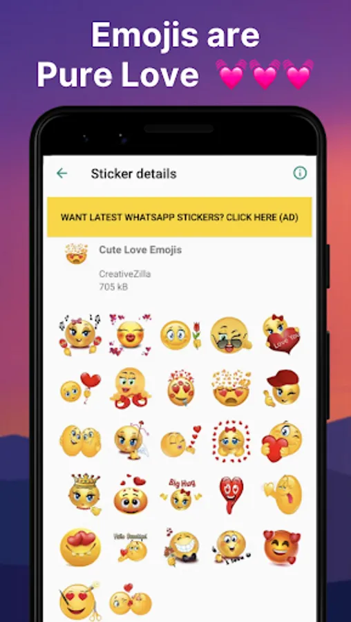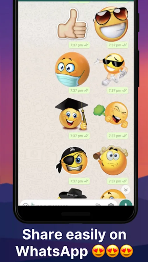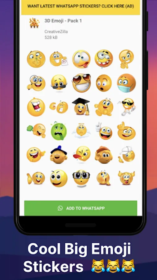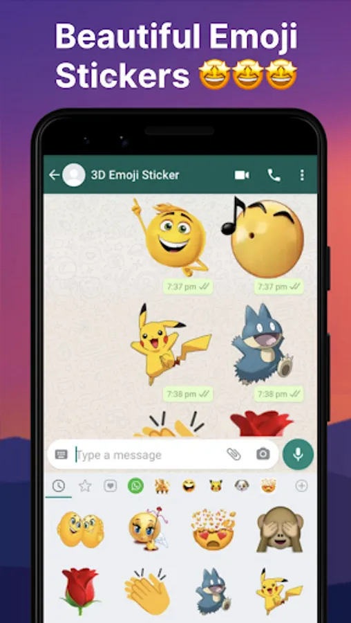 Try out the exciting 3D emoji Stickers with 3D Big Emoji Stickers for WhatsApp app. The app offers the best collection and the most fascinating 3D Emojis. Share funny 3D Emojis and funny memes with your loved ones and add life to your conversation.