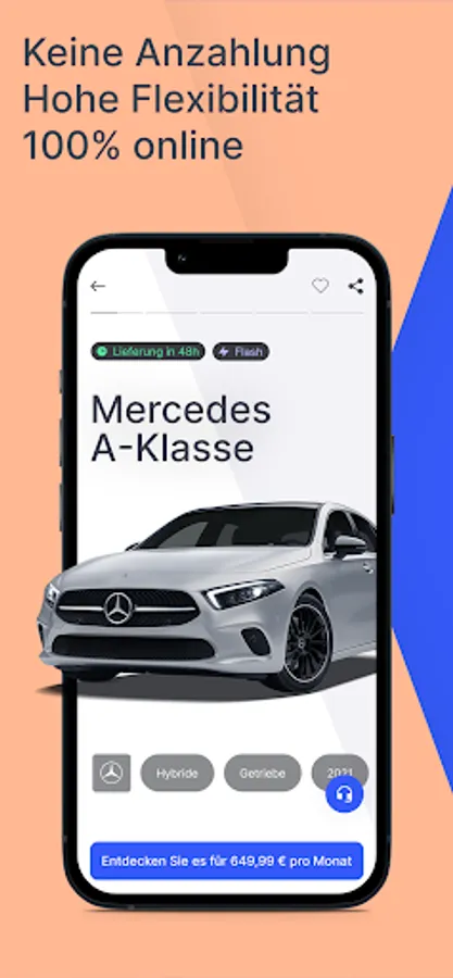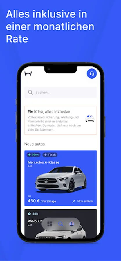 Download the app and do everything 100% online without the hassle of paperwork. There you go: Open the app, select the car and drive for a month or as long as you need it. You can also change vehicles monthly if you wish - by season, by demand or just for fun!