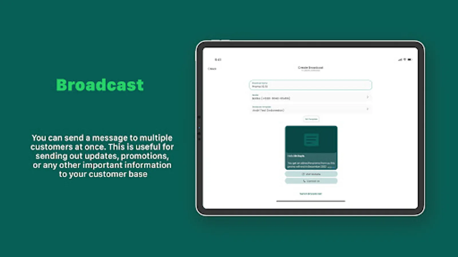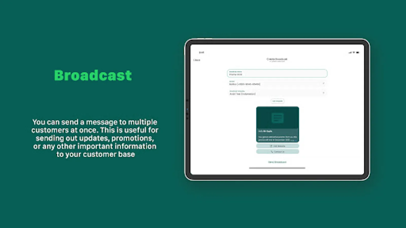 Reach your entire customer base in one go with our seamless broadcasting feature. Wabis enables you to send important updates, promotions, and announcements to your customers efficiently, ensuring that your message reaches the right audience at the right time.
