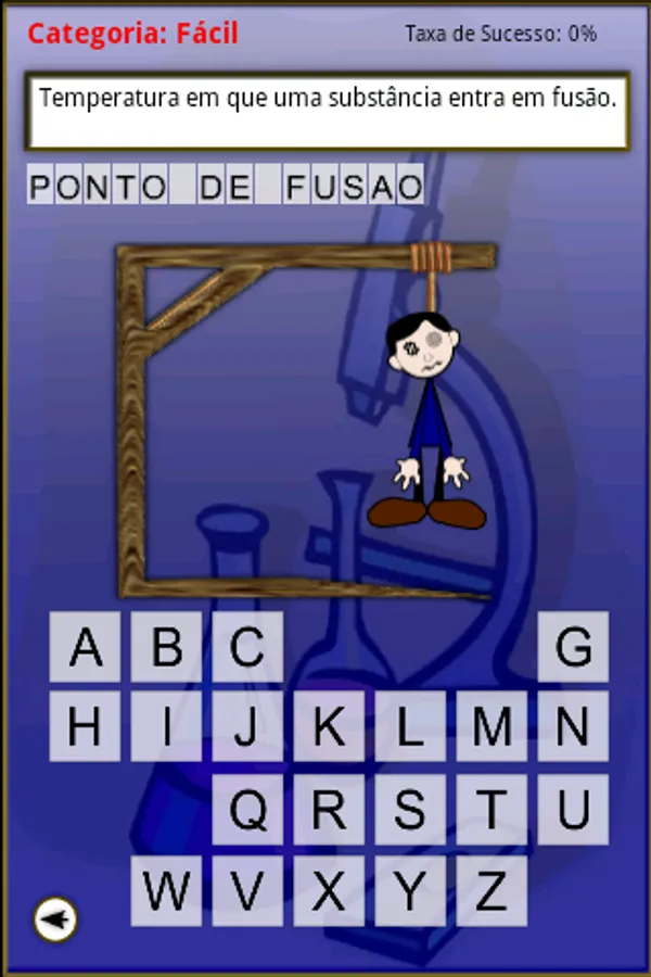 You are challenged with questions on Chemistry and should prevent the boy hanged. A real chemistry class in the form of game. Chemistry questions are presented in this hangman game and cover various issues related to chemistry and every restart more knowledge is acquired by you. This game gets frequent updates, and every update new questions about chemistry are added. In addition, you have at your disposal a statistical panel that shows the evolution of their learning, so that you can challenge yourself to get better and better your score.