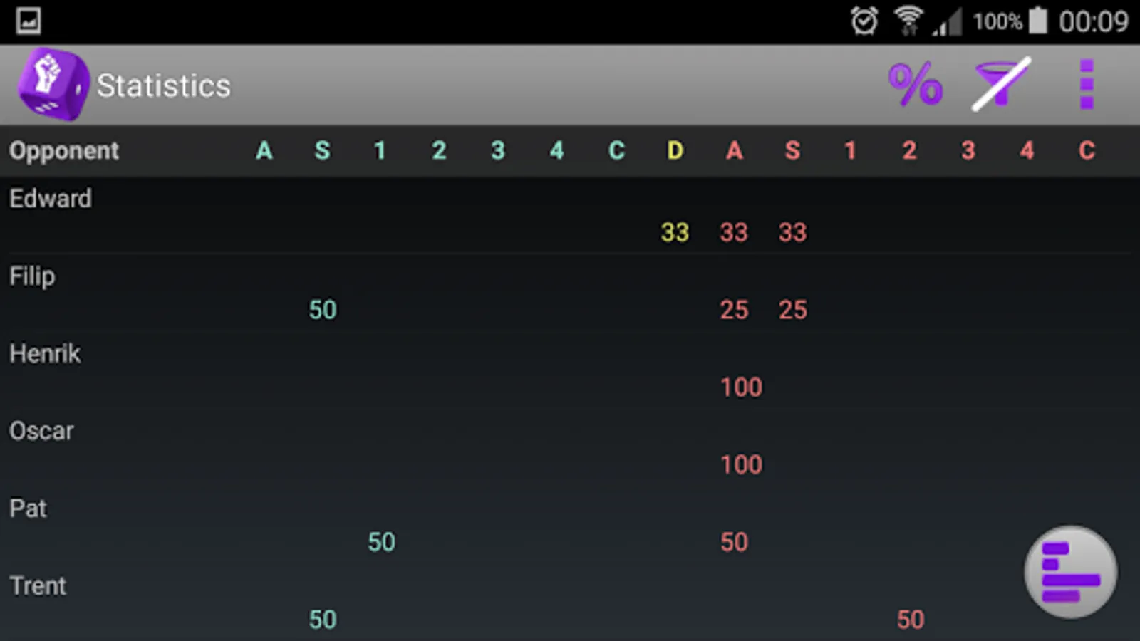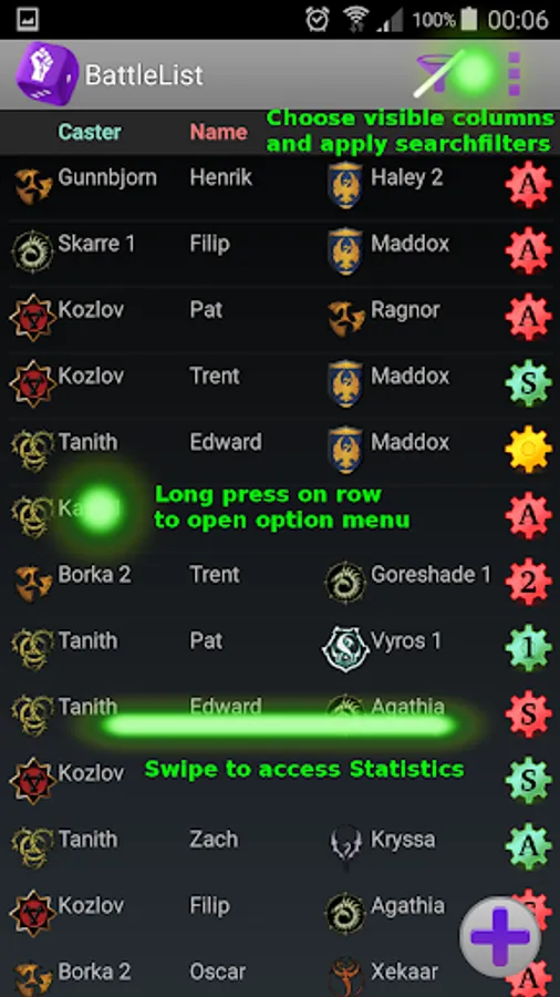 Instead of looking at all your battles all the time, you can apply a filter to the app. When applying a filter you will only see the battles that fulfill the requirements in your filter.