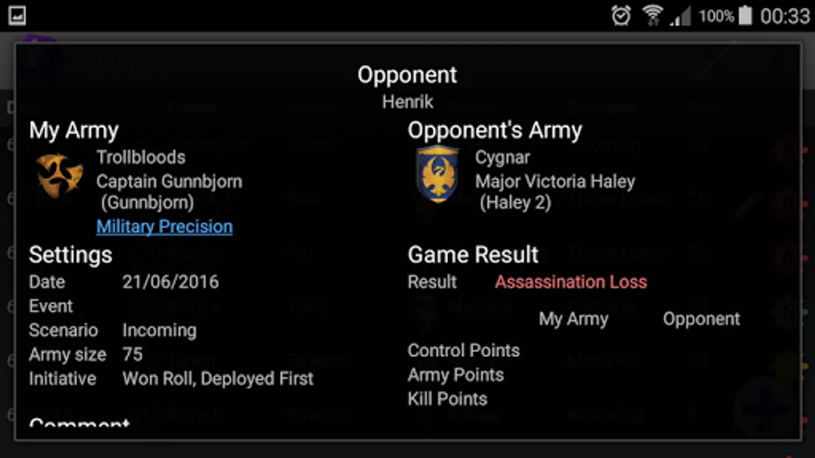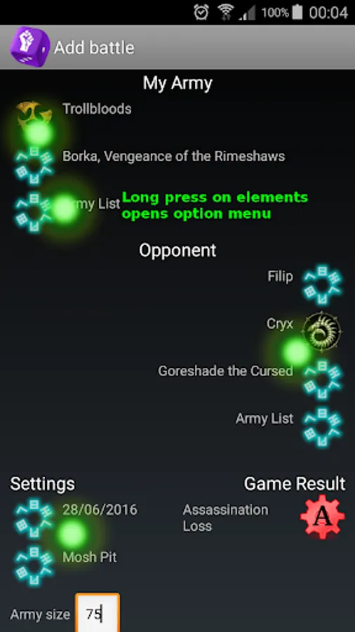 Use this app to help you remember your game results for Warmachine and Hordes MK3 games.