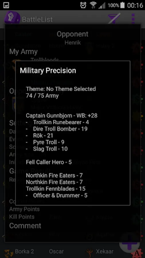- Opponents armylist