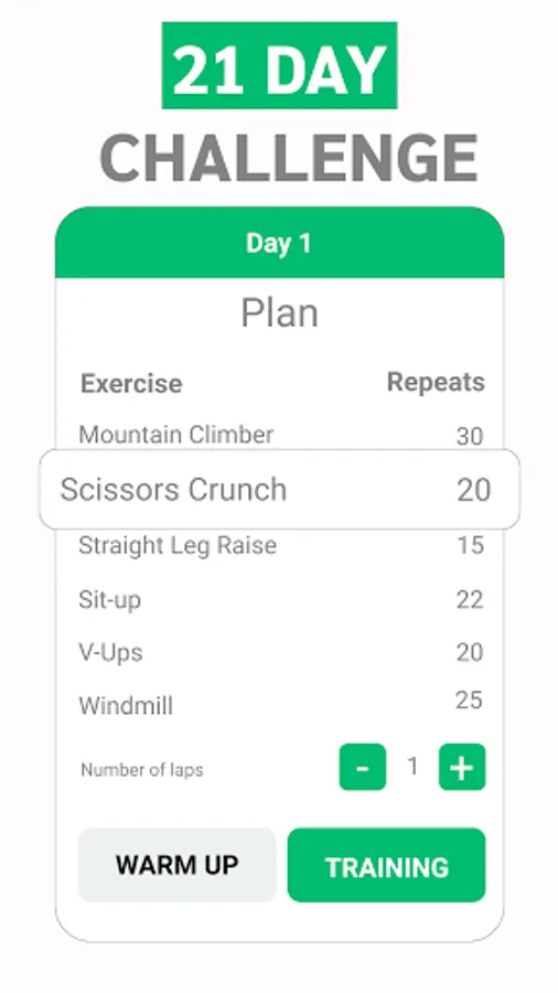 Formation of good habit takes 21 days, that is why each program of abs training is effective for three weeks in order to make physical activity an integral part of your life and help you have the desired shape. For maximum effect, we strongly recommend to keep to the program by the elaborated schedule and stick to a good diet.