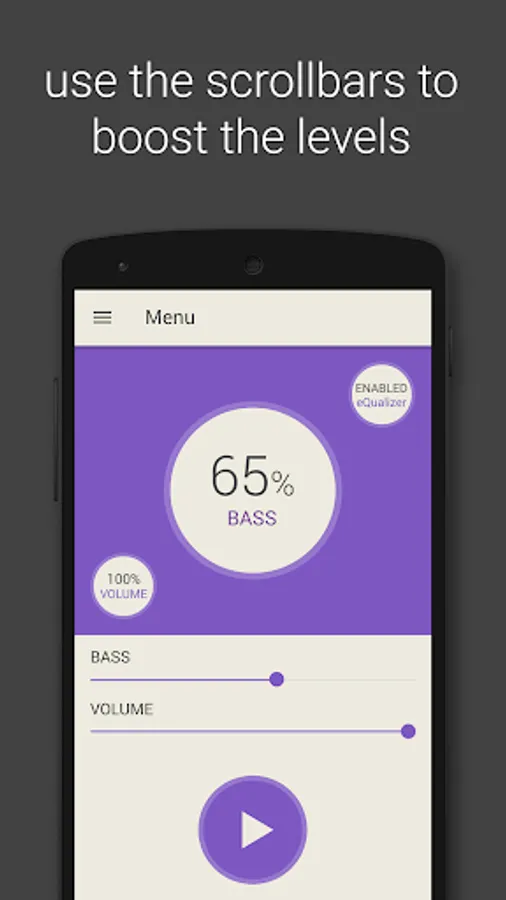 Bass Booster is a native app which will allow you adjust your bass level. For maximum results please plug-in external speakers or headsets.
