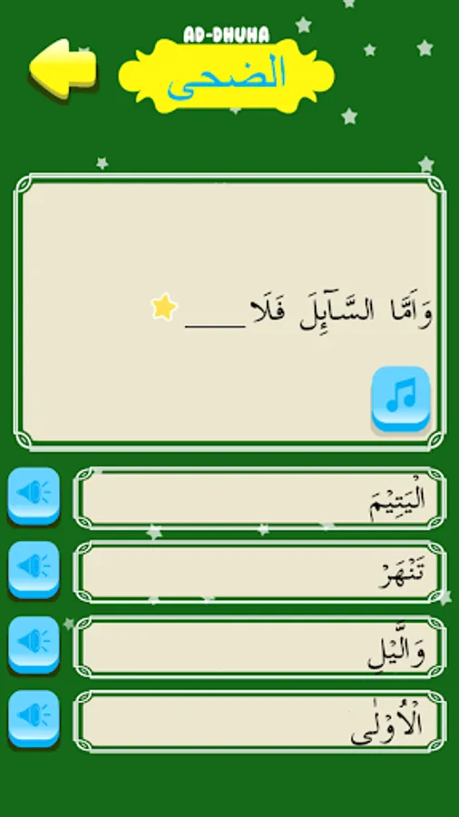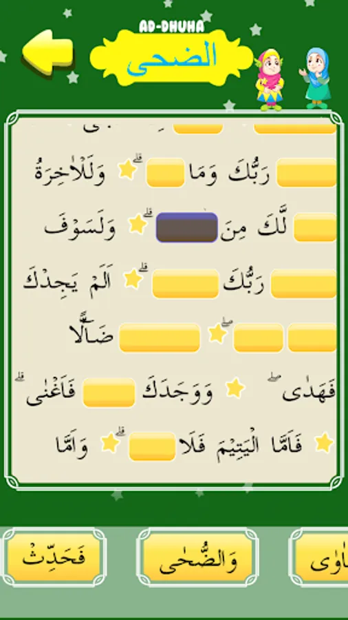 - Puzzle: Fill in the blanks in order to form a complete Surah Ad Duha