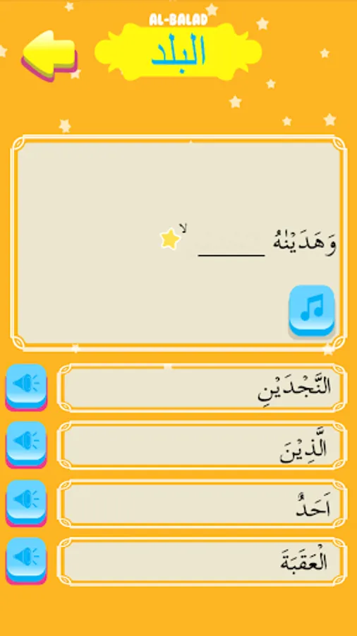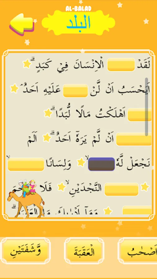 - Puzzle: Fill in the blanks in order to form a complete Surah Al-Balad