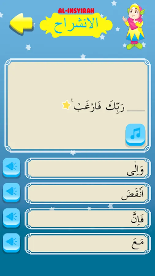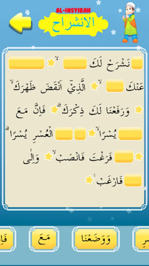 - Puzzle: Fill in the blanks in order to form a complete Al-Inshirah
