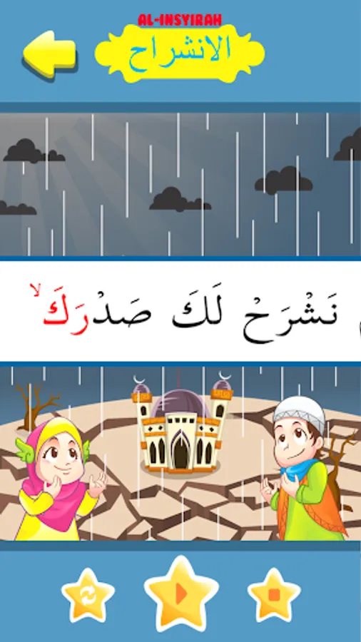 - Murotal: Al-Inshirah murotal will be played automatically followed perkata highlight being read