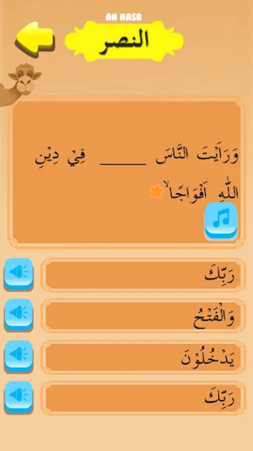 - Sort: sort the correct verse so in accordance with Surah An Nasr