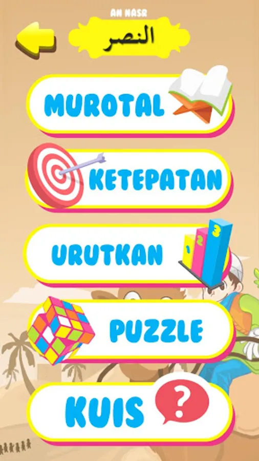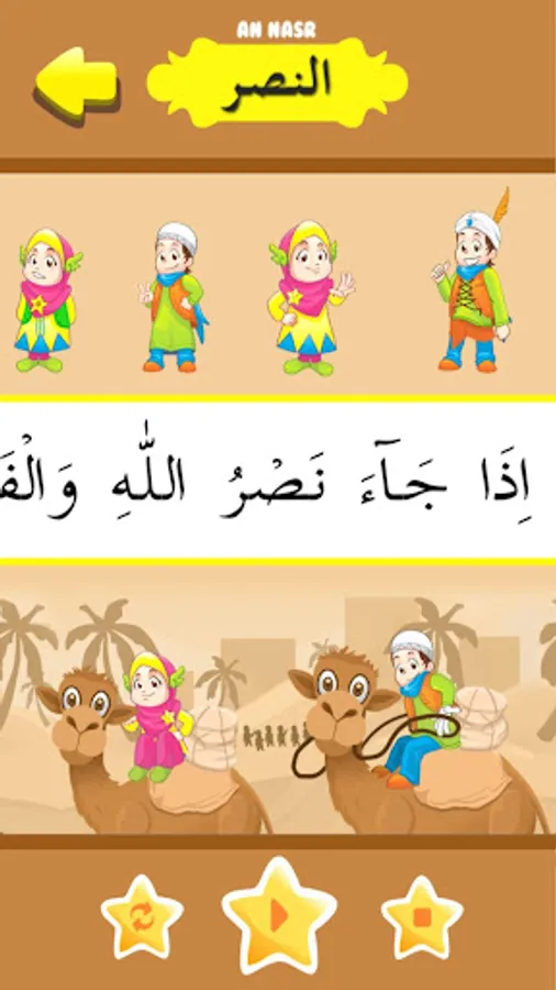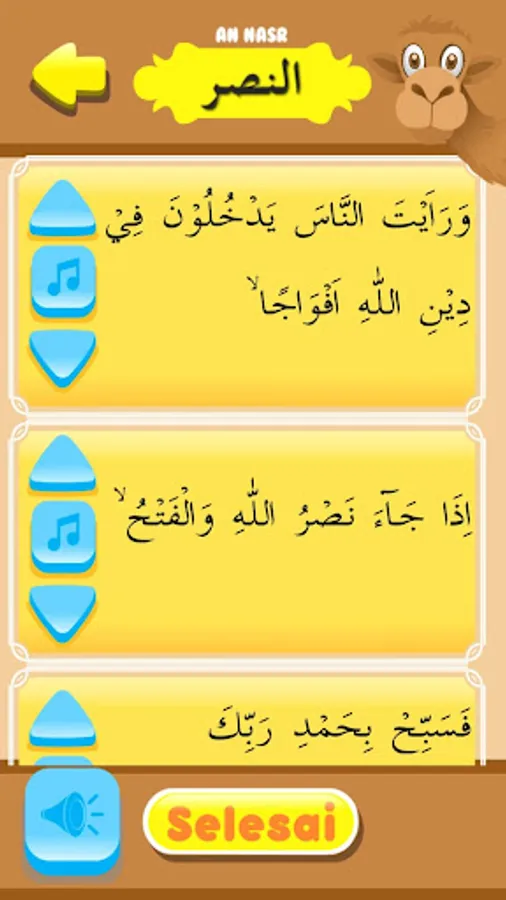 - Murotal: murotal Surah An Nasr will be played automatically followed perkata highlight being read