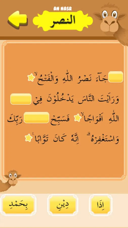 - Puzzle: Fill in the blanks in order to form a complete Surah An Nasr