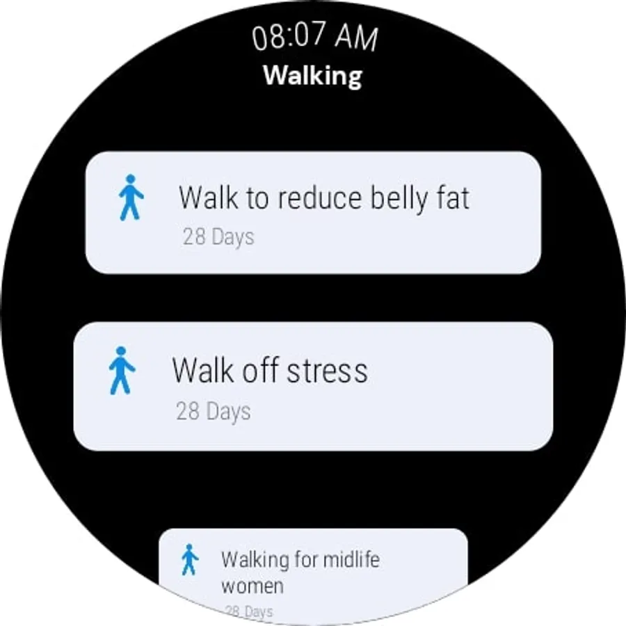 Access your daily workout routines, search for new walking for weight loss plans, and even set a walking timer using your Wear OS supported smartwatch.