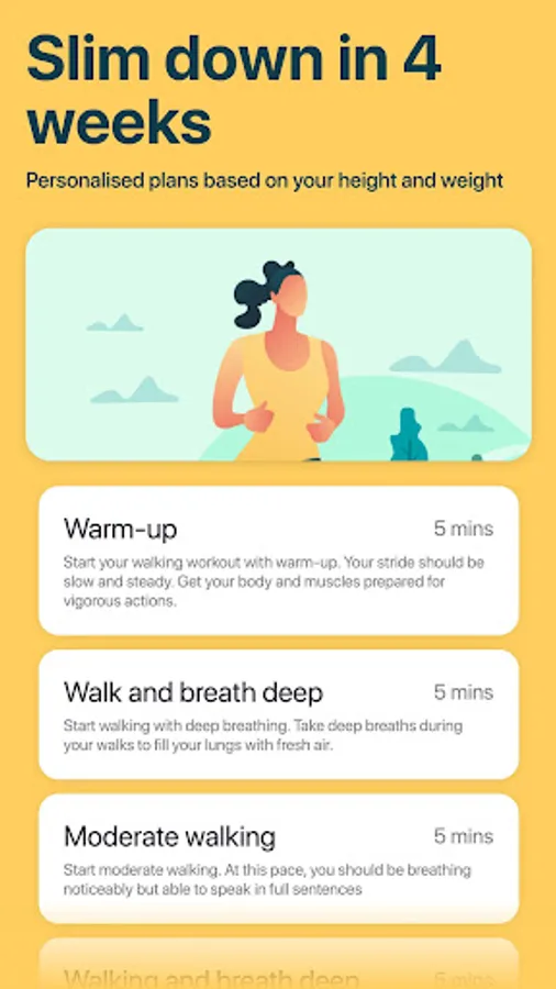The weight loss walking app helps you create a 28 day (4 weeks) walking plan for weight loss for women and men. This walking plan includes walking exercise at home & walking workouts to lose weight in 30 days. Daily walking reminders are available in our weight loss walking app.