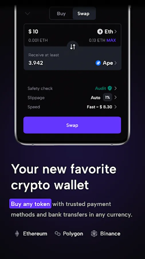 From creating your free wallet to adding cash via Apple Pay or credit card to sending tokens across the world, to swapping one token for another one - everything just works and is lightning fast!