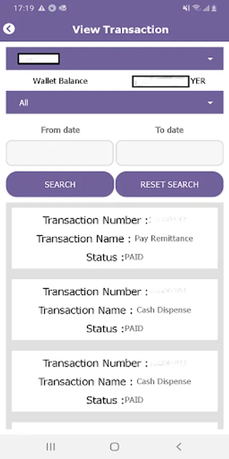 3. Cash Dispense-Using this option, you can Pay for cash to Customer using Cash withdrawal Number.