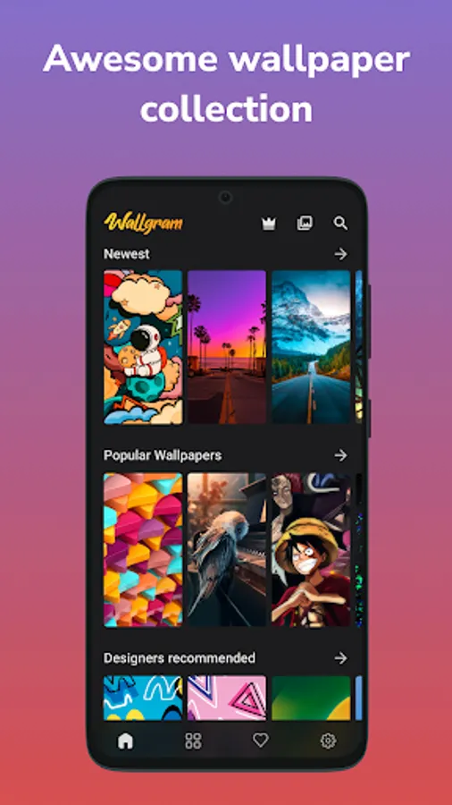 Wallgram is a huge collection of free HD wallpapers for any Android device. Our collection has over 50,000 high-quality pictures that you can download and install on your home screen or lock screen for free.