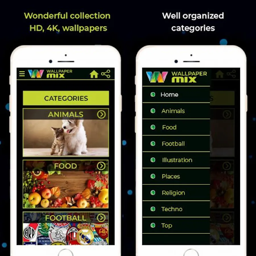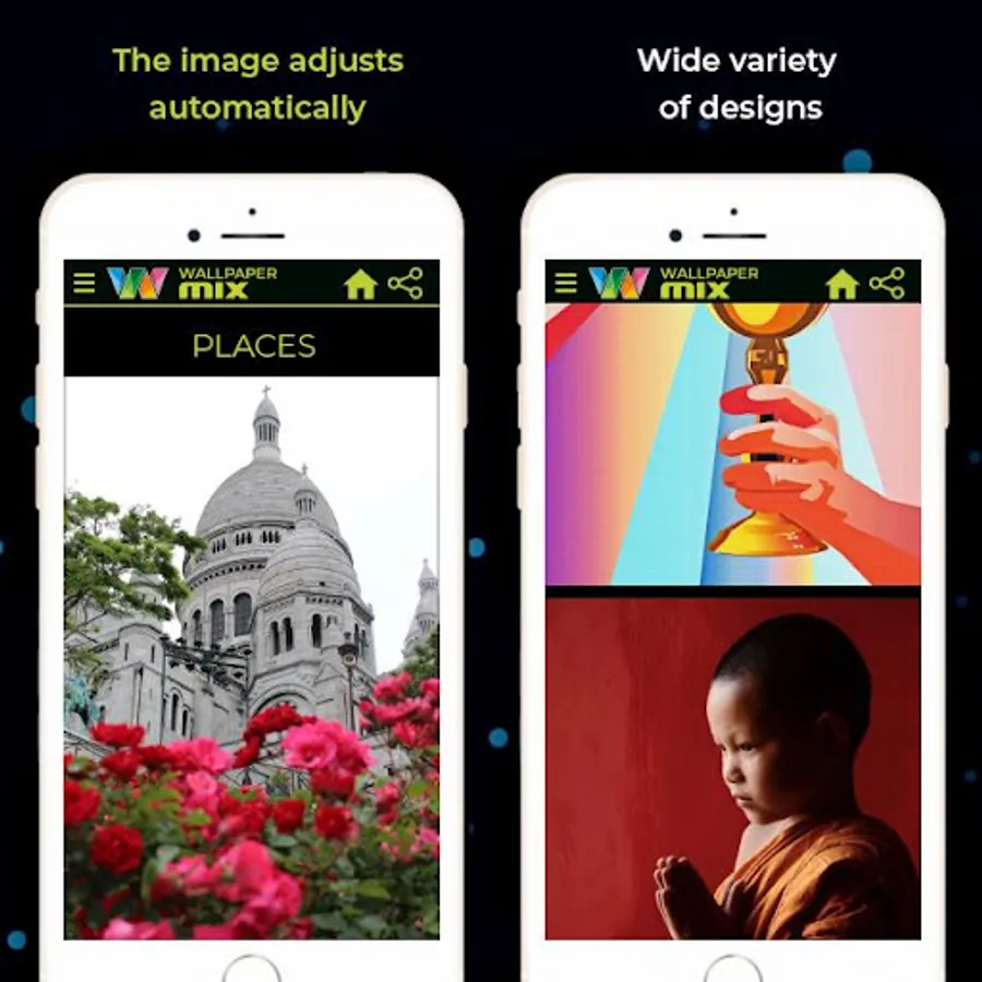 WALLPAPER MIX is an application that brings a wonderful and unique collection of HD wallpapers and backgrounds. The wallpapers are automatically recognized and adjusted to the screens of phones and tablets. Give your device a special look with this HD wallpaper application now.