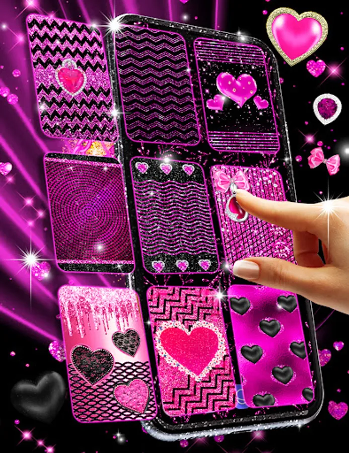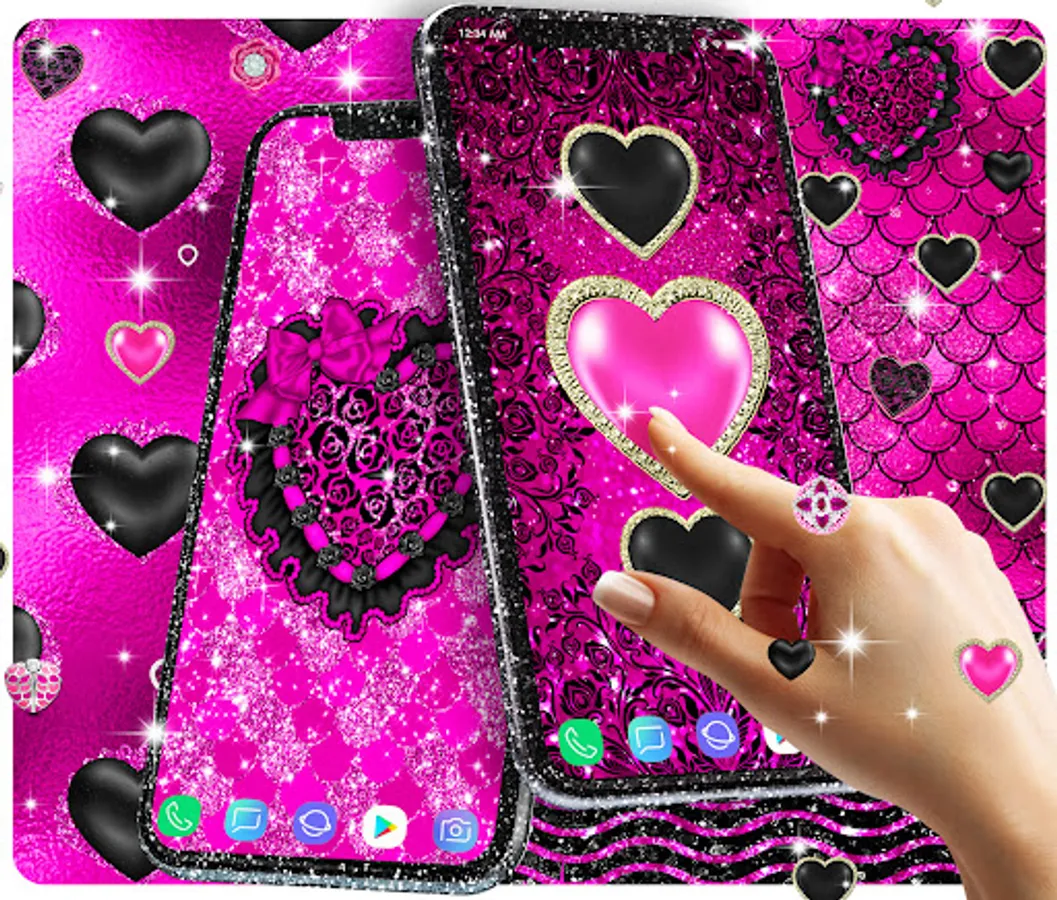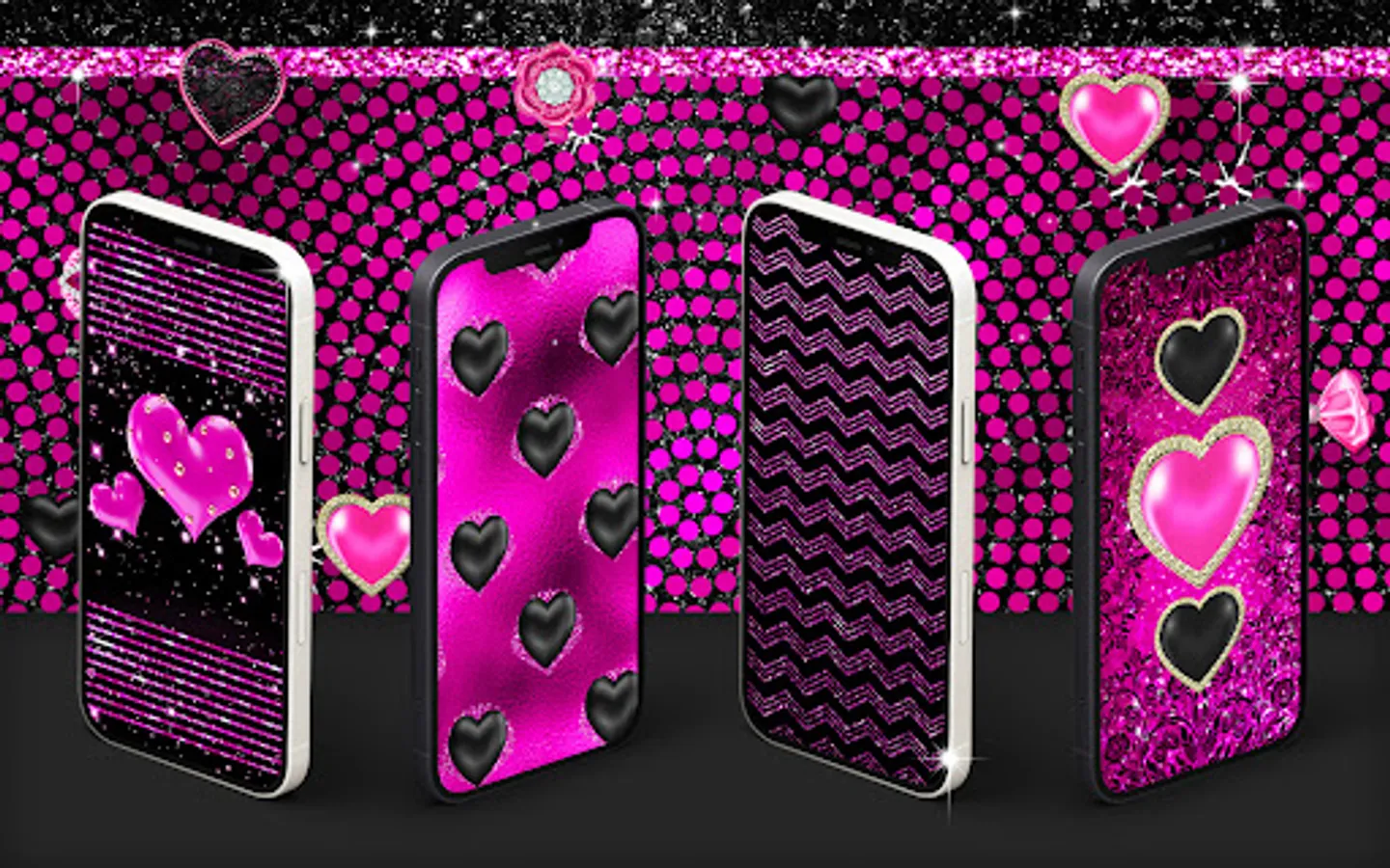 Black pink glitter live wallpaper is a new girly app with black and pink glitter images and live animations. You will find a lot of glitter wallpapers with various elements and lines,beautiful hearts and diamonds with shiny elements. Hearts elements will fall over the screen. Create your own live background, choose your image and elements and personalize it as you wish, you can choose from those elements: flower diamonds, pink or black hearts with golden borders, hearts with black lace, elegant hearts with jewelry design and pink bows.