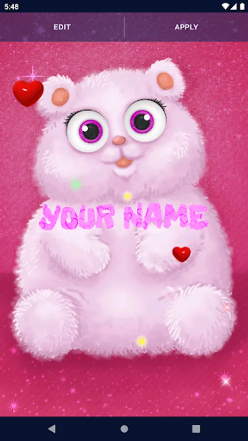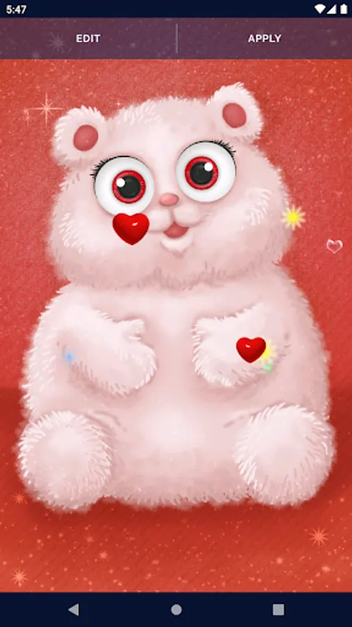 Cute Fluffy Live Wallpaper ❤️ Hearts Wallpapers has multiple moving wallpapers with sweet character and pink heart images, fluffy bear backgrounds, cute pet HD wallpaper, multiple customize options like background changer, frames, animated hearts and stars, magic touch, analog clock, emoji, your name and more, that work on the lock screen and they are all FREE!