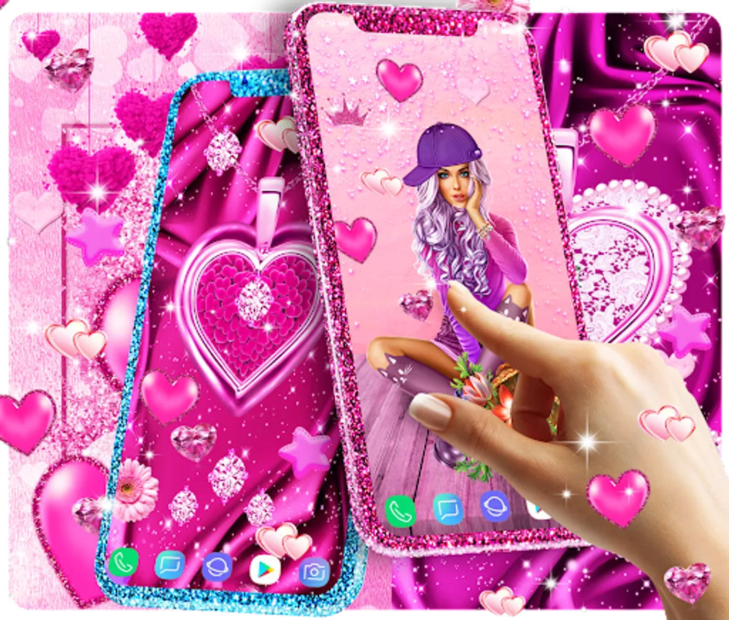 HD wallpapers with pink and purple hearts, princess girls and diamond hearts. You will surely enjoy Wallpapers for cute girls.