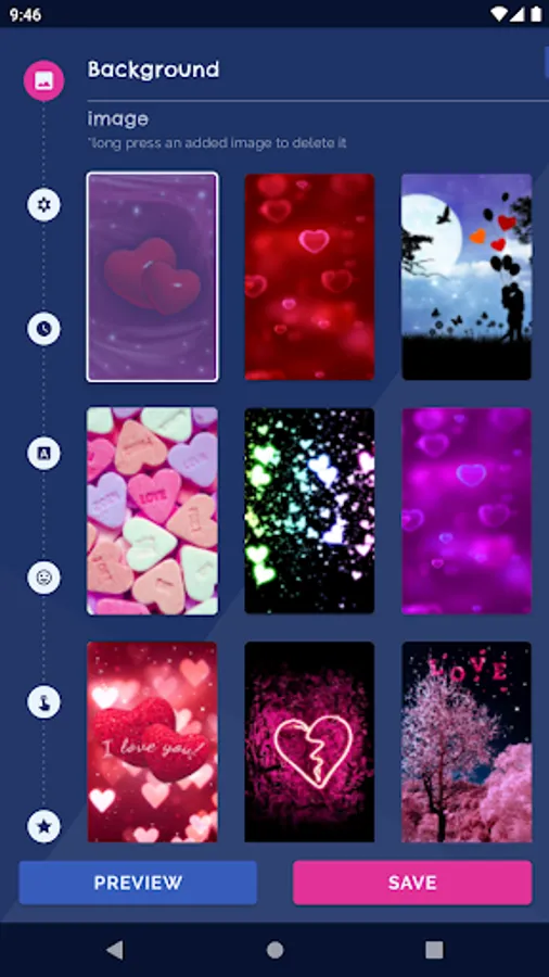 You can choose one of our many HD backgrounds or you can add your own pictures to the red hearts 4k live wallpaper! You can set up an automatic background changer with magic touch!