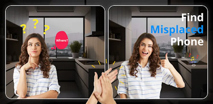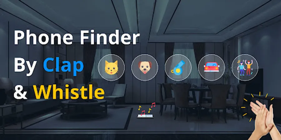 - Easy phone finder by clapping and whistle to find.