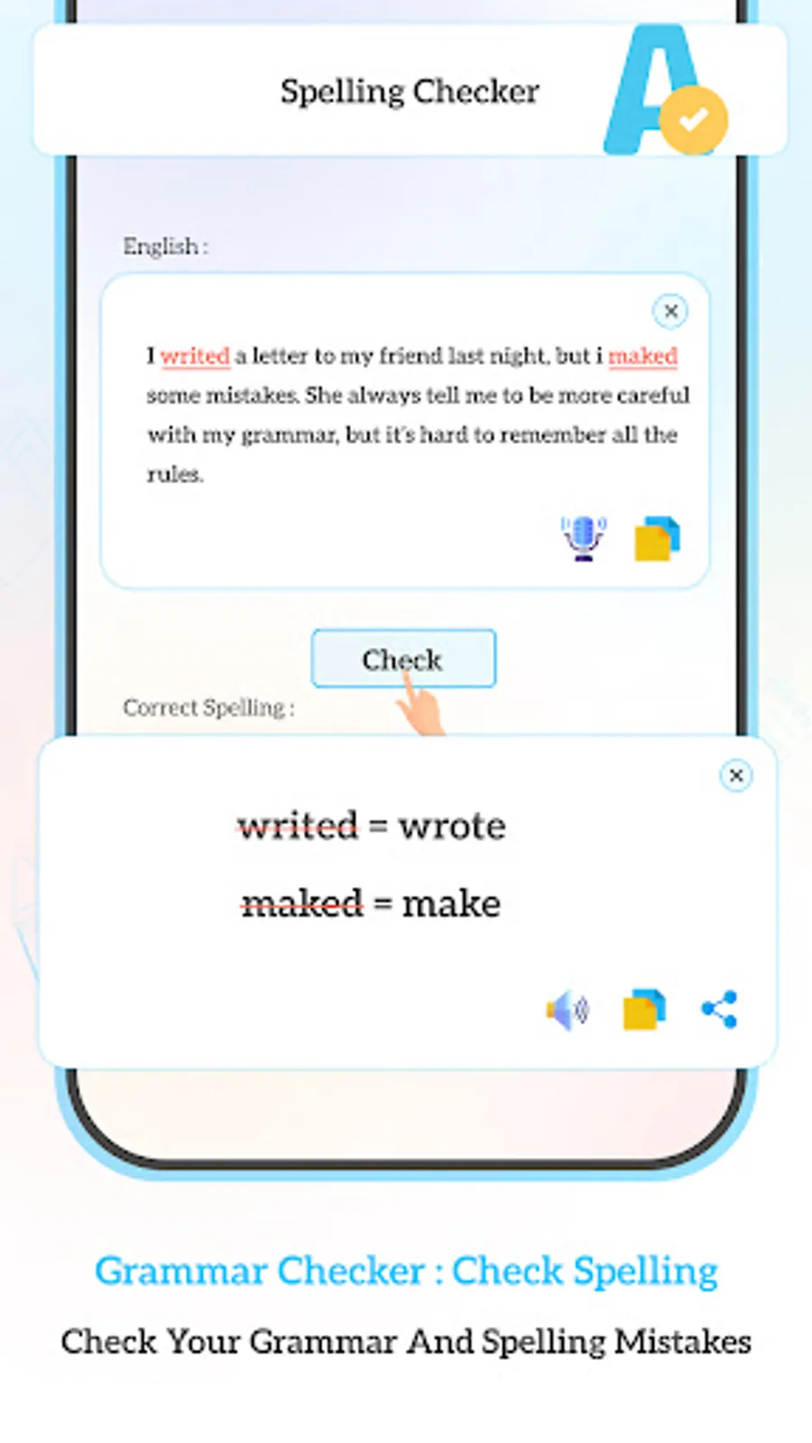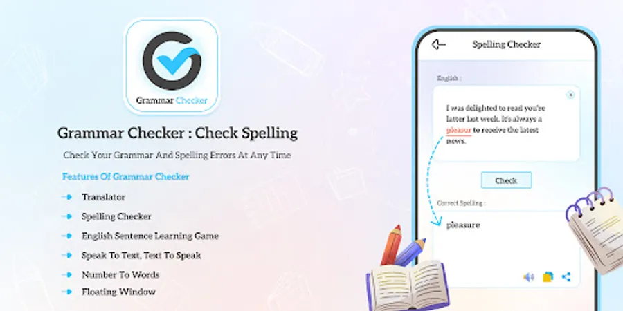 English Grammar Spell Checker can check and help to improve your grammar.