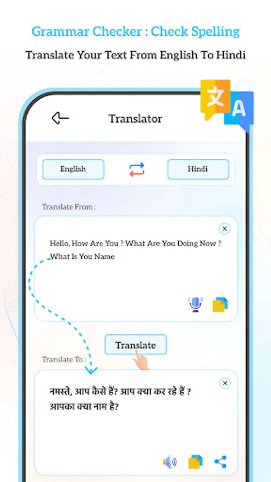 - Translate your word and sentences into other languages.