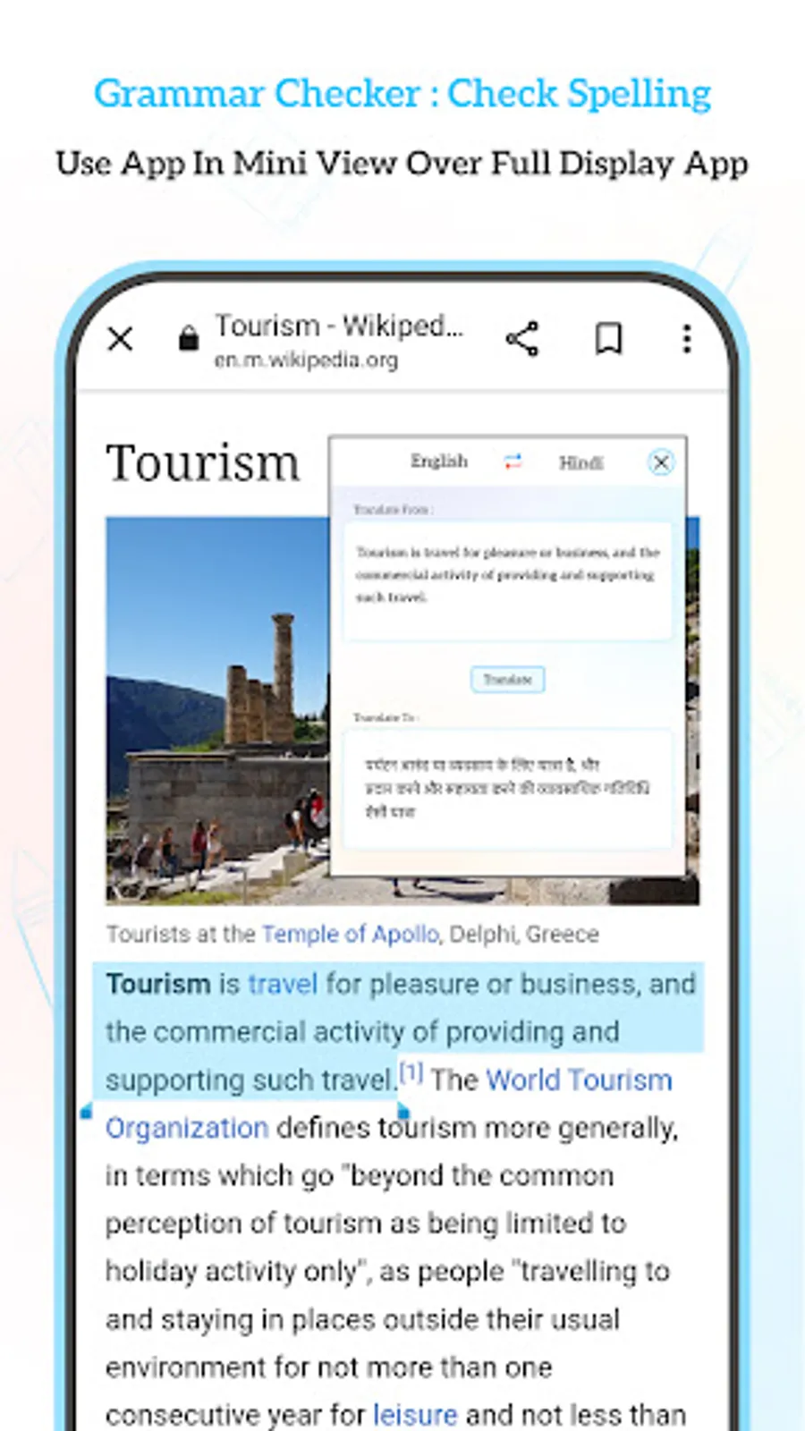 - Find meaning of any word or sentences.