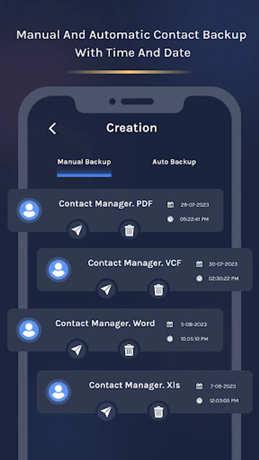Contact backup with auto backup and manual backup.