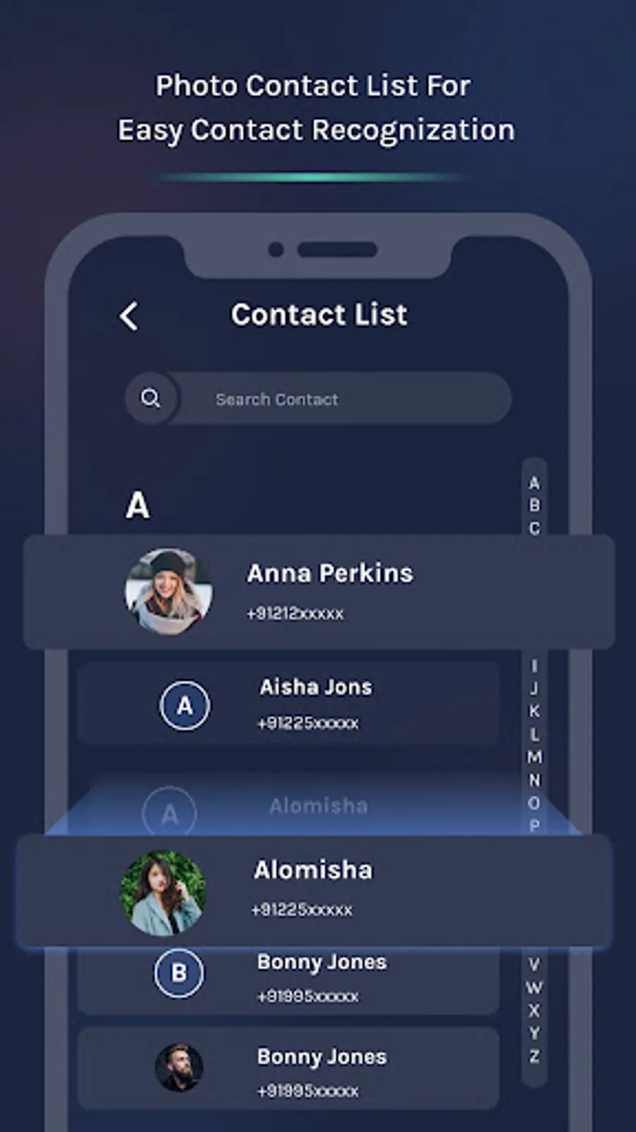 - Easy to search contacts from list.