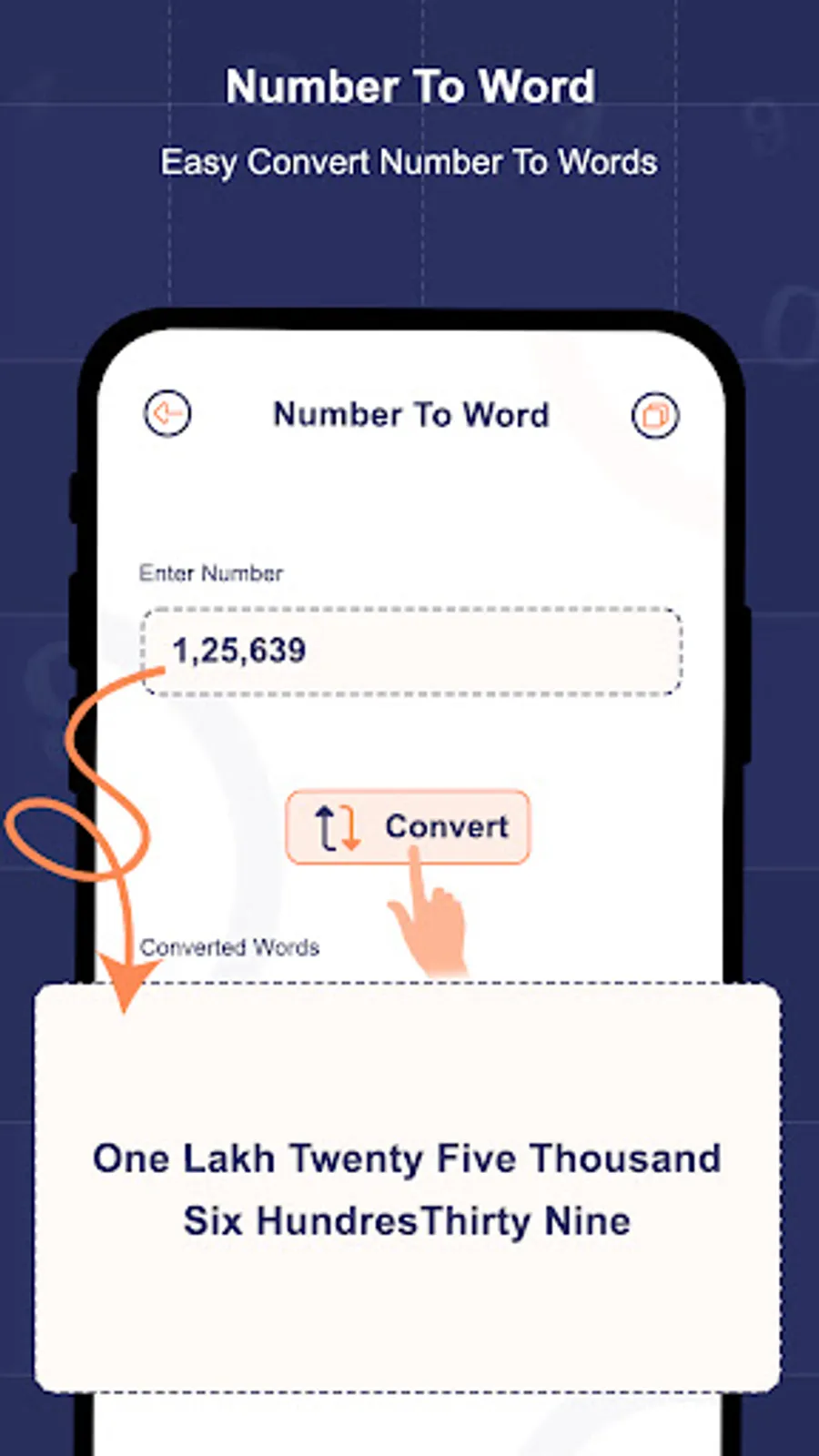 Numbers to Words Convertor App help user to write numbers into digits and convert them into words.