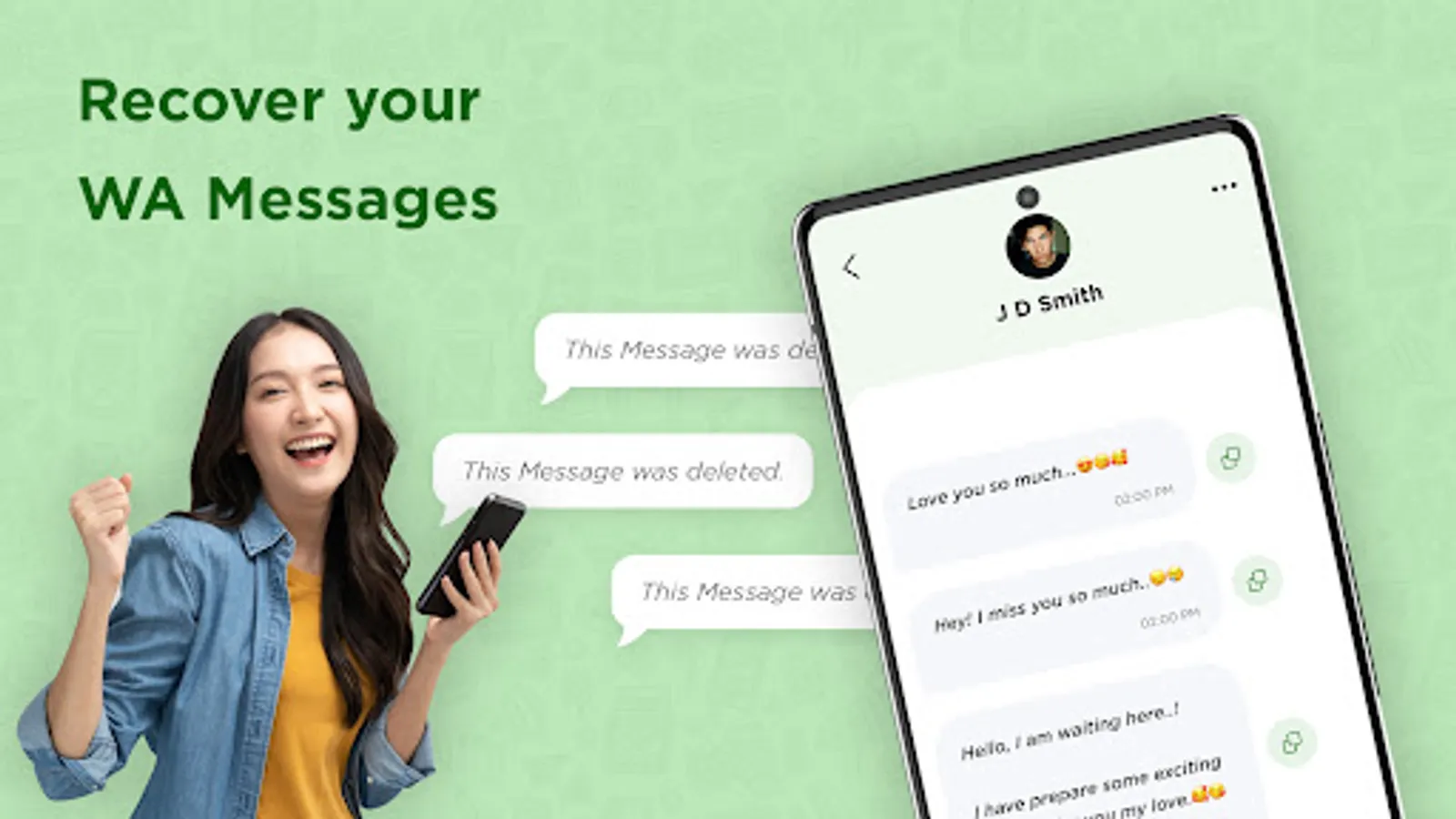 WhatsApp™ is a trademark of WhatsApp Inc. Recover Deleted Messages of WA is owned by us and is not an official WhatsApp application. We are not affiliated, associated, authorized, endorsed by, or in any way officially connected with WhatsApp Inc.