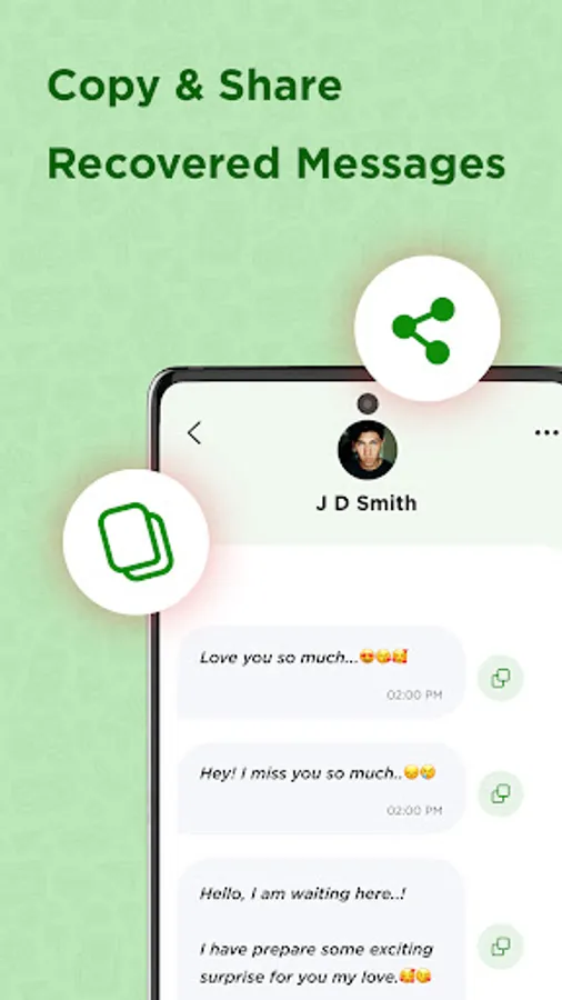 Easily take a screenshot of the chat and share it with friends or others through sharing media. You can also copy to the clipboard and delete the messages.