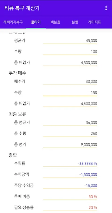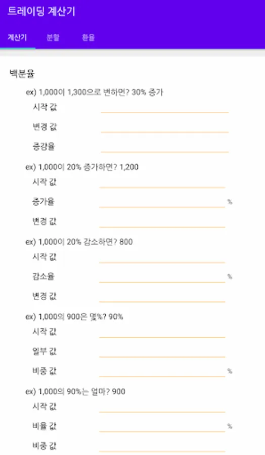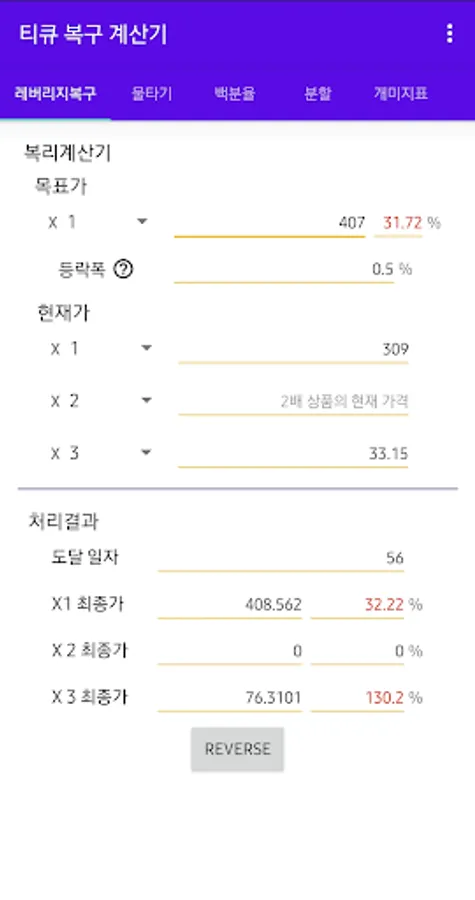 Various percentages, compound interest, and price split calculations are possible.