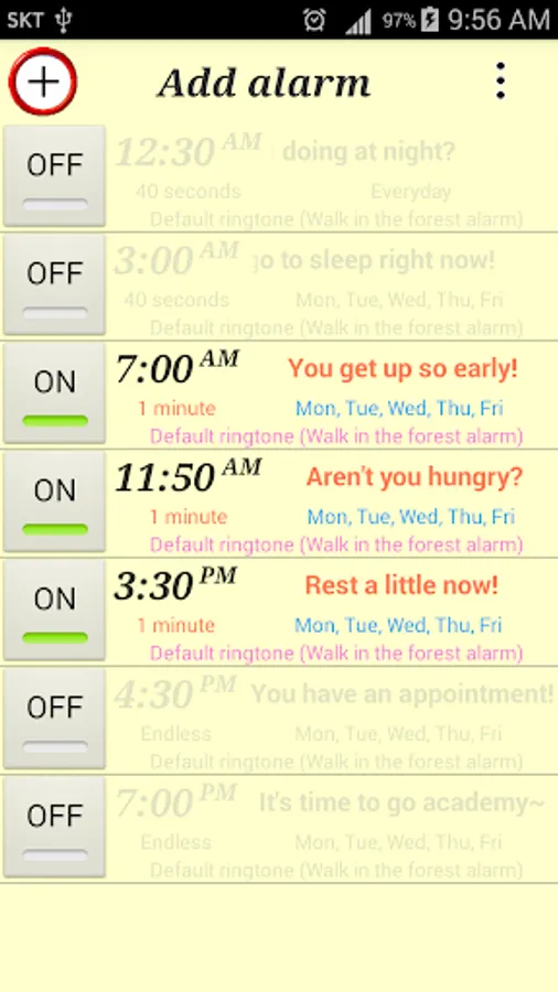 ☆ The clock will tell you the schedule with cute voices. You can change the time of each schedule.