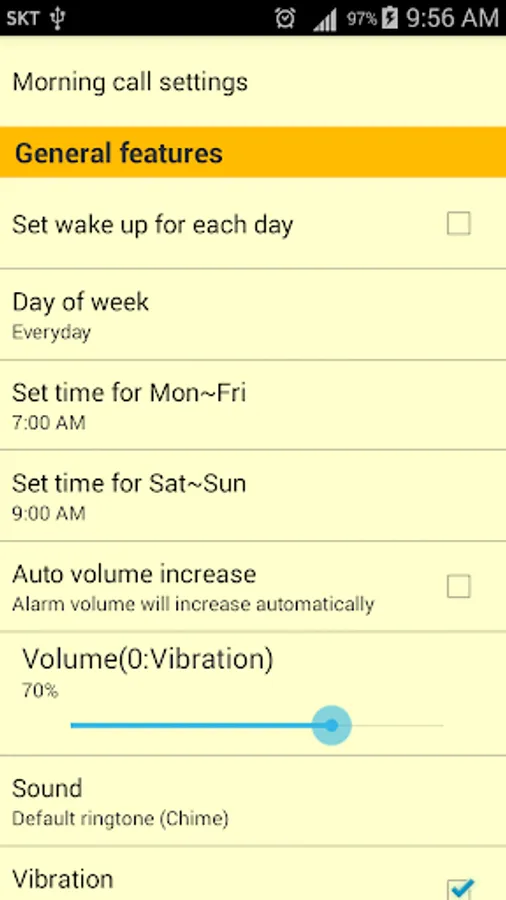 ☆ You can set internal ringtone sound or your music files(like MP3 or OGG) as alarm sound.
